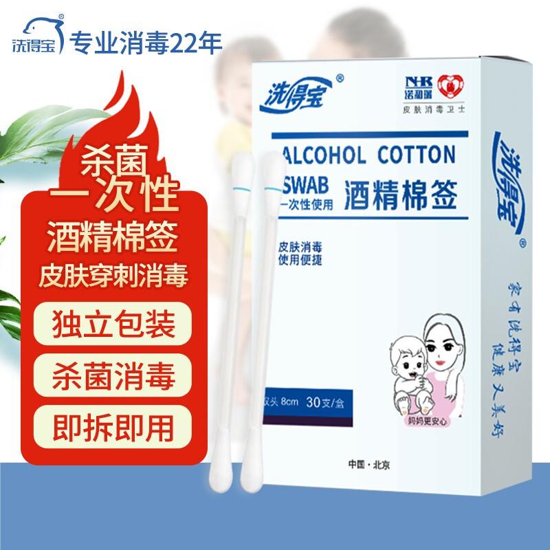 > 洗得宝 75%酒精棉签 30支/盒 一次性独立包装 酒精乙醇消毒液(计价单位:盒)