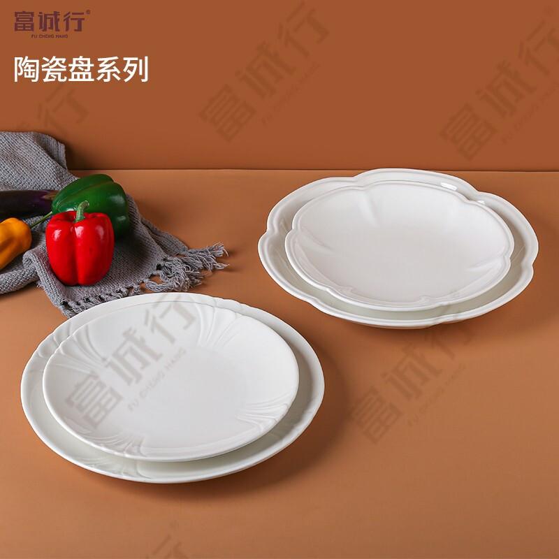 富诚行 陶瓷浅盘双边梅花玉兰边浅式盘纯白汤盘 双边梅花盘【2个装/组】 26cm 12英寸