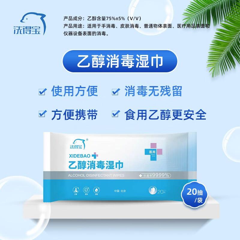 > 洗得宝 75%酒精乙醇消毒湿巾 20片/包 消毒清洁湿巾(计价单位:包)