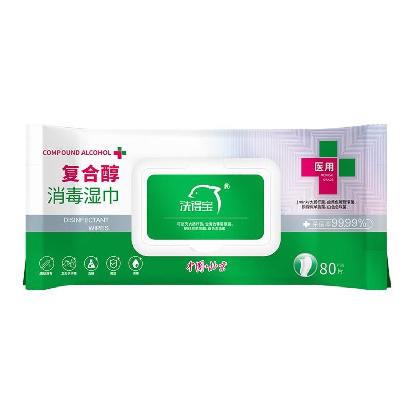 > 洗得宝 复合醇消毒湿巾 80片/包 不含酒精 清洁消毒(计价单位:瓶)