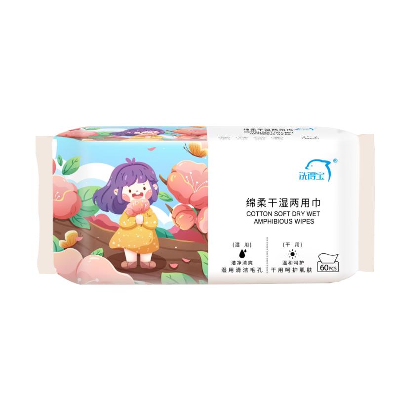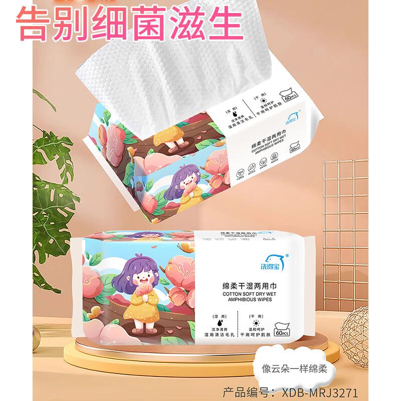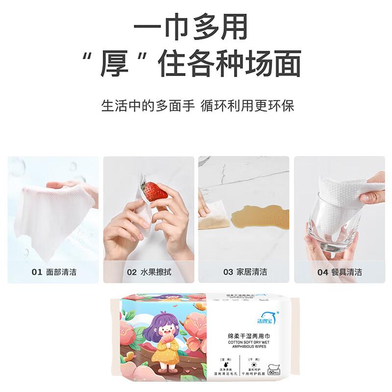 > 洗得宝 绵柔干湿两用巾 一次性加厚加大洗脸巾 抽取式卸妆洁面擦脸巾60片