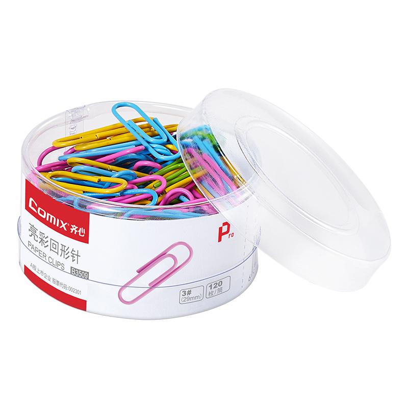 > 齐心 B3509 亮彩回形针 29mm 120枚/筒 彩色 单位:筒