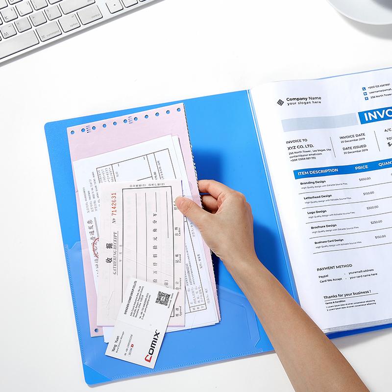 齐心 NF100AK-1 大容量资料册 带外壳 A4 100袋 蓝 单位:个