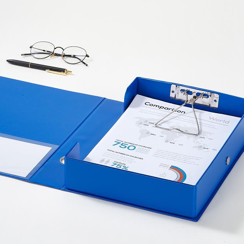 齐心 A1236 磁扣式PVC档案盒带压纸夹 A4 55mm 蓝 单位:个
