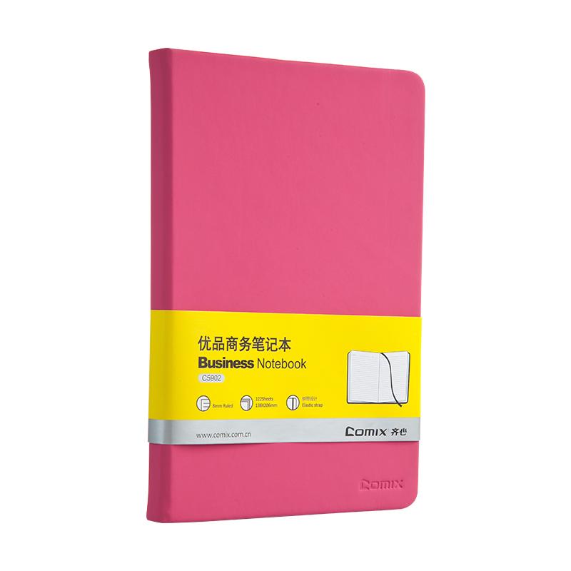 > 齐心 C5902 皮面笔记本 A5 122张 玫红 单位:本