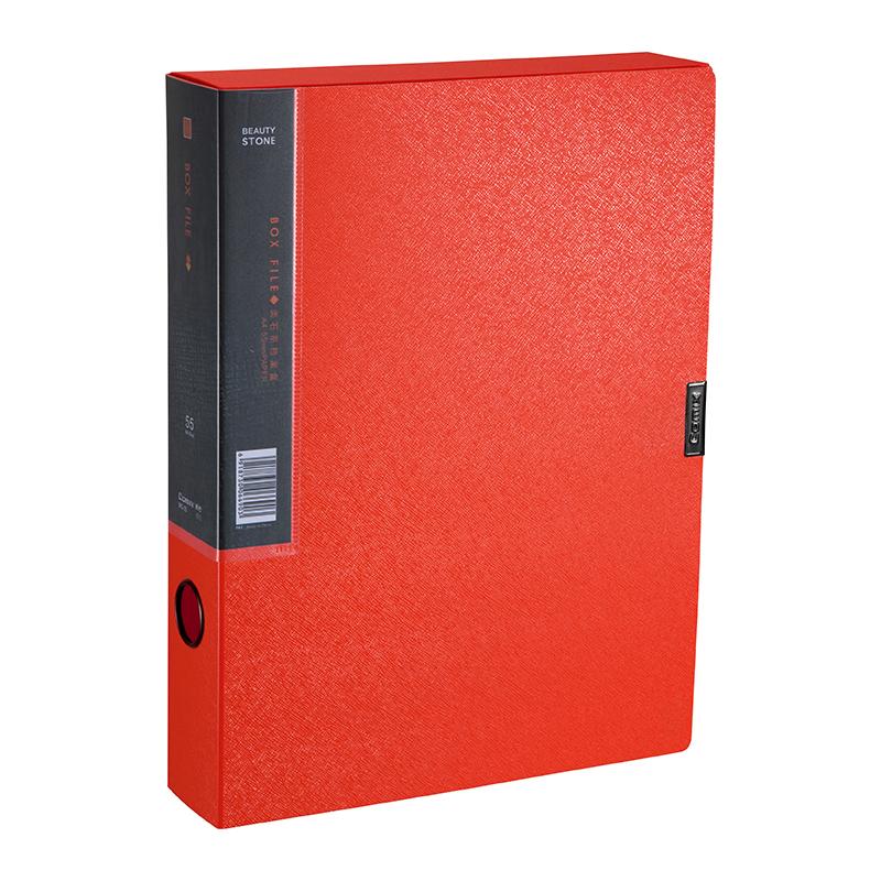 齐心 MC-55 美石PP档案盒 A4 55mm 橘红 单位:个