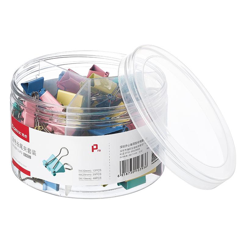 > 齐心 B3652 彩色长尾票夹套装 3/4/5号 配 单位:桶