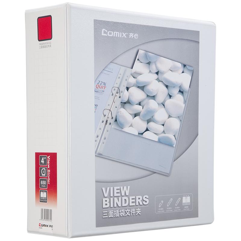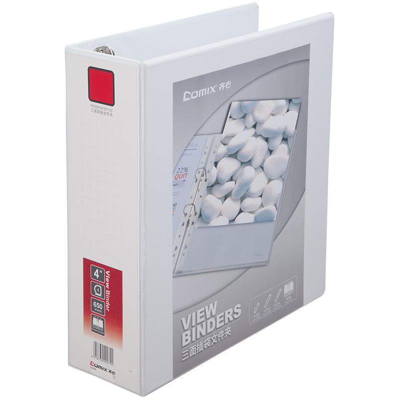 齐心 A0239 4寸4孔D型夹美式三面插袋文件夹 A4 白色 单位:个