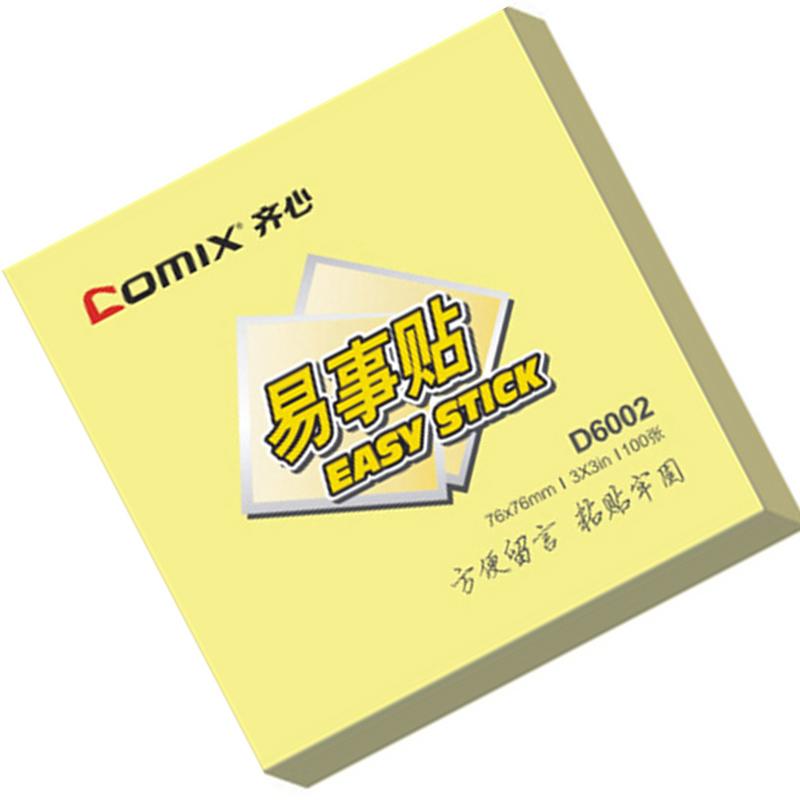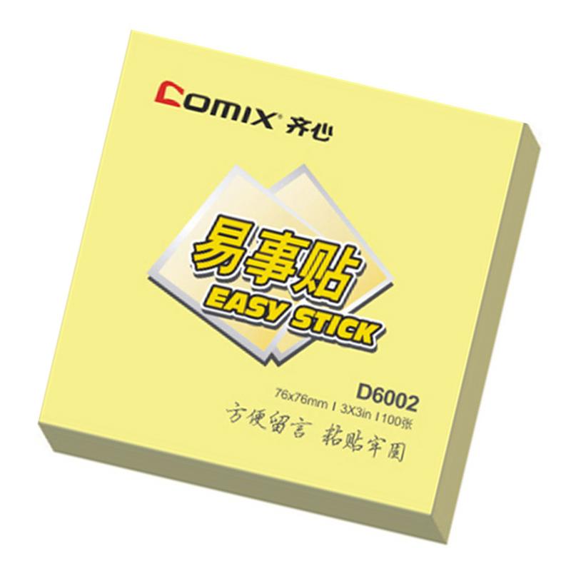 齐心 D6002 办公必备系列易事贴便利贴 76*76mm 100张/本 黄色 4个装