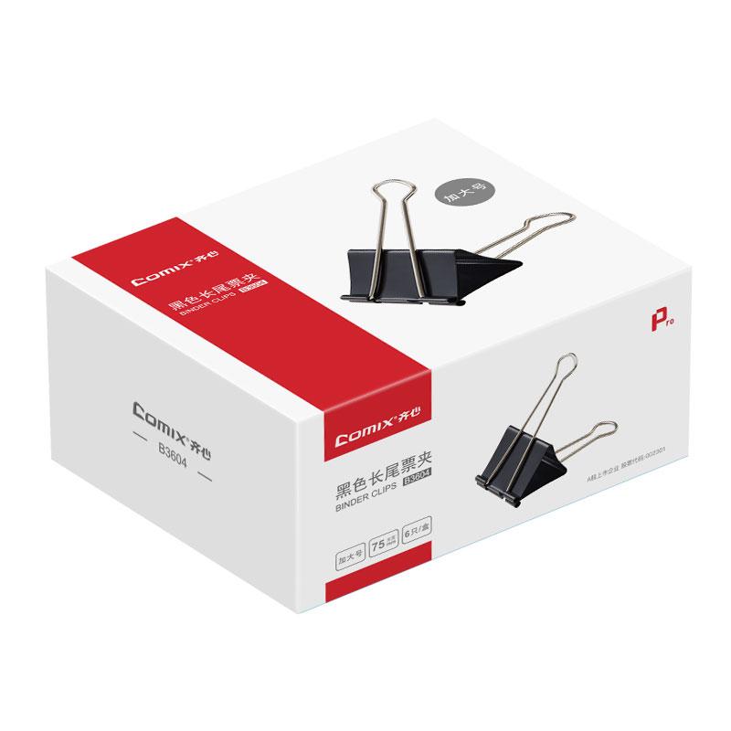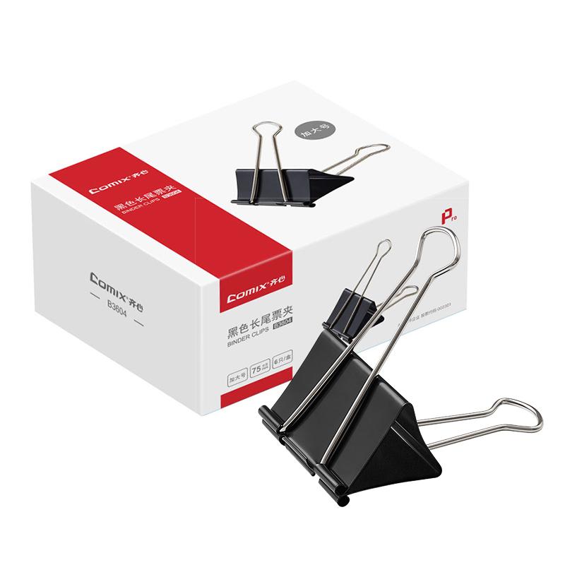 > 齐心 B3604 黑色长尾夹 (75mm) 黑 单位:盒