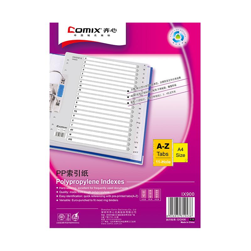 > 齐心 IX900 A4 11孔 21页 A-Z字母PP索引纸 灰 单位:套