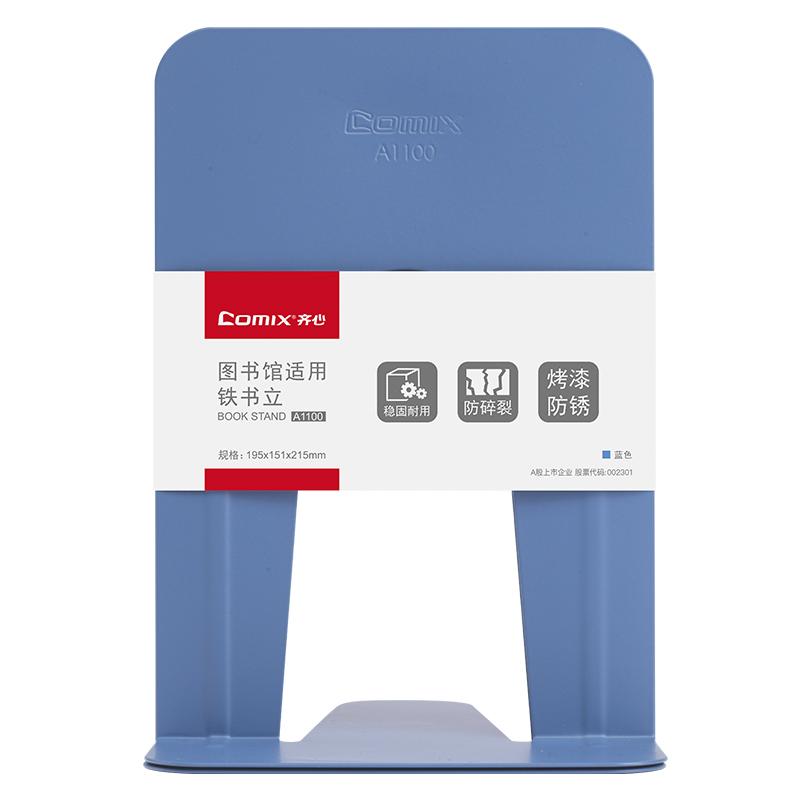 > 齐心 A1100 图书馆专用铁书立大号 9寸 蓝色 单位:套