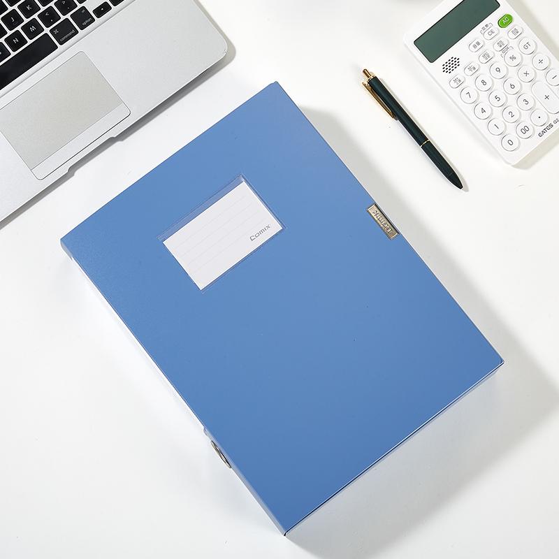 齐心 HC-55 办公必备PP文件盒 A4 55mm 绯蓝 单位:个