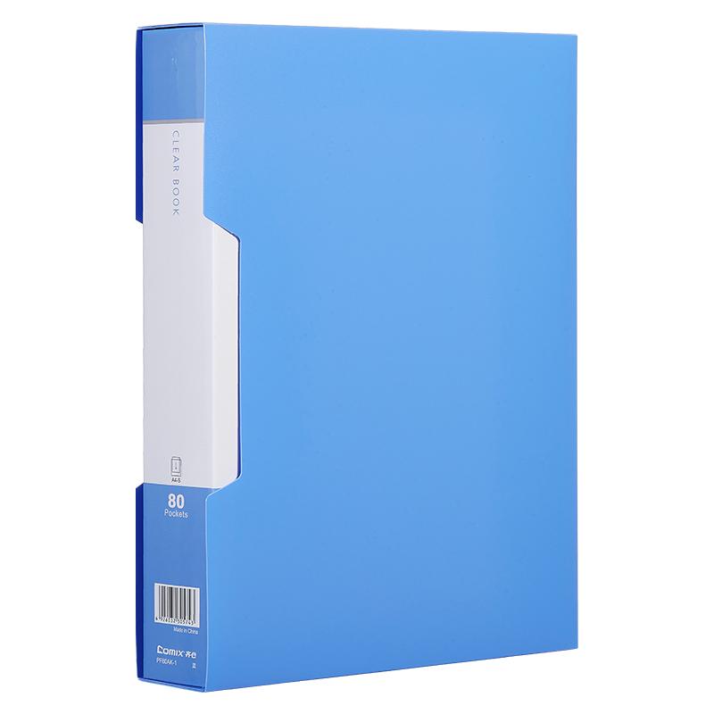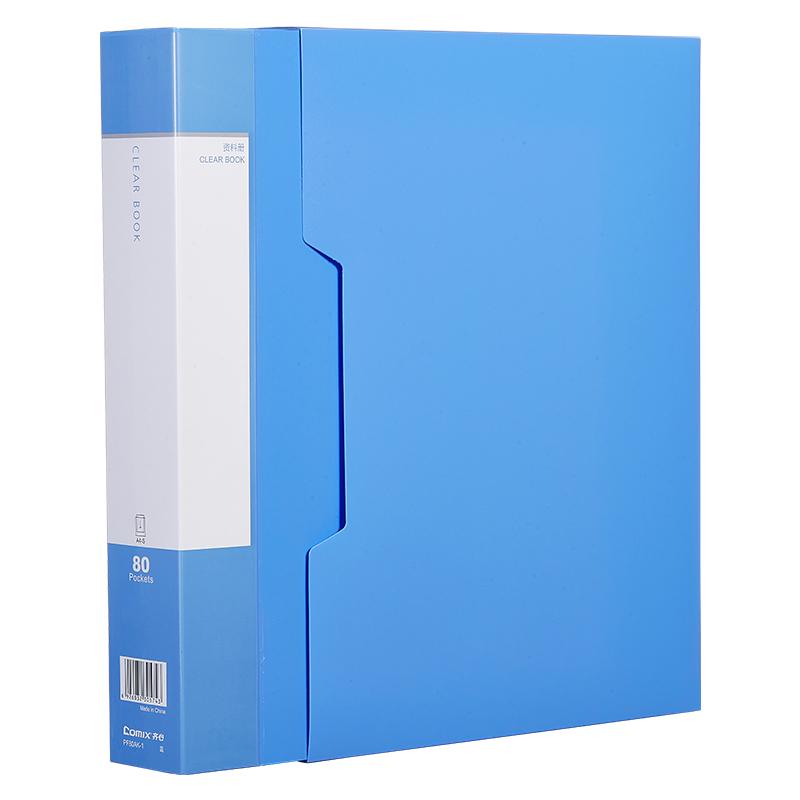 齐心 PF80AK-1 大容量资料册 带外壳 A4 80袋 蓝 单位:个
