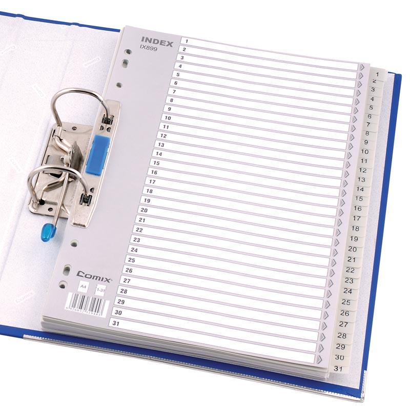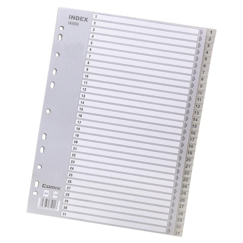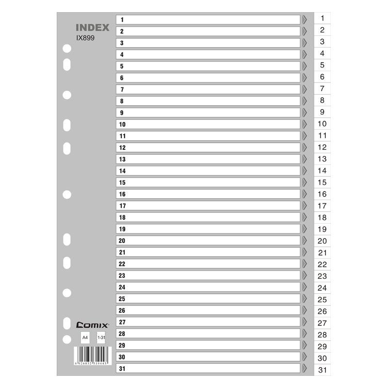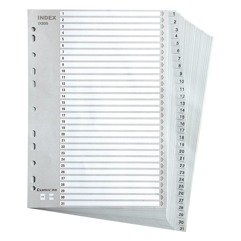 > 齐心 IX899 1-31月度PP索引纸 A4 11孔 31页 灰 单位:套