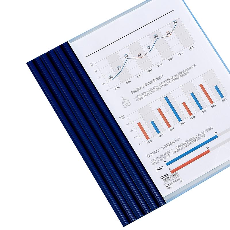 齐心 Q310 办公必备报告夹抽杆式 A4 30张 蓝 10个装