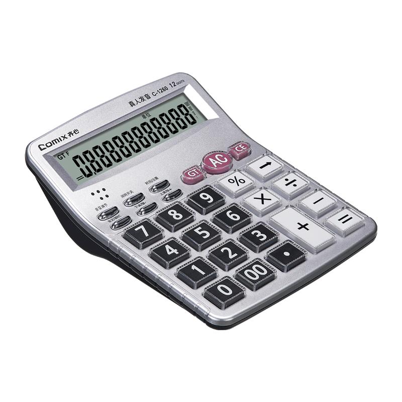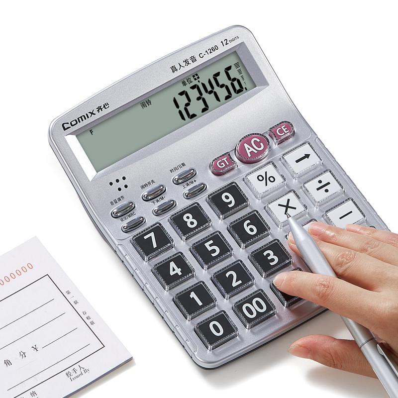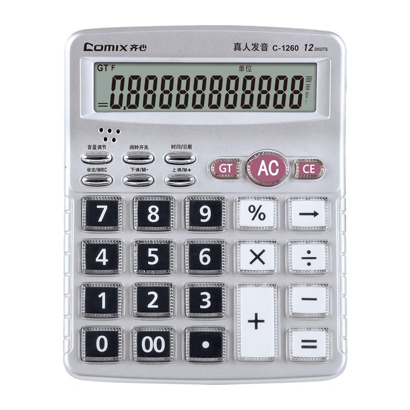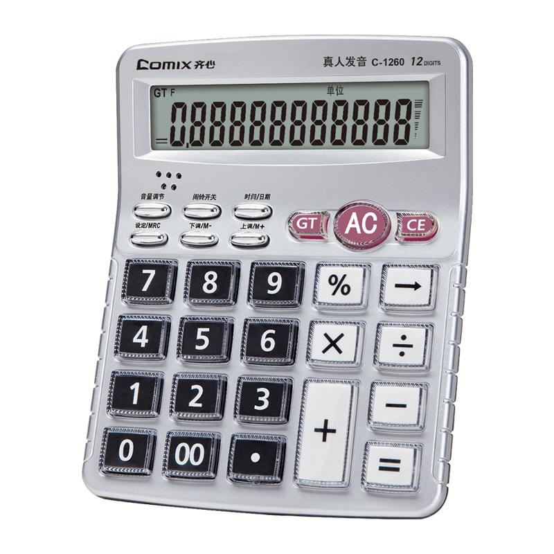 > 齐心 C-1260 经典语音王计算器 12位 169*134*41mm 银 单位:台