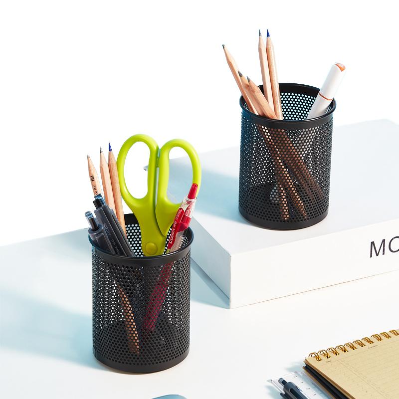 > 齐心 B2002 圆笔筒金属网格 82*105mm 黑 单位:个