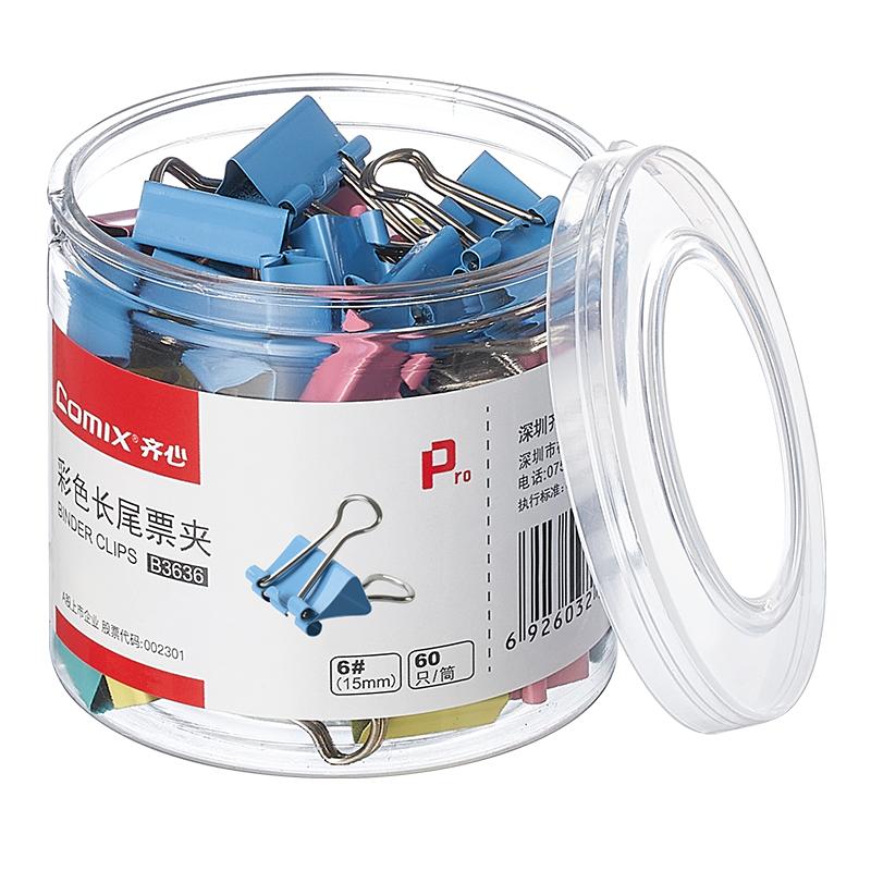> 齐心 B3636 长尾票夹 15mm 60只/筒 配色 单位:筒