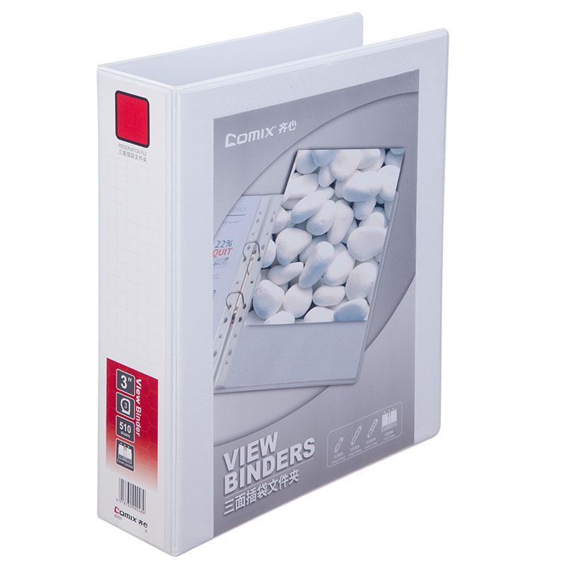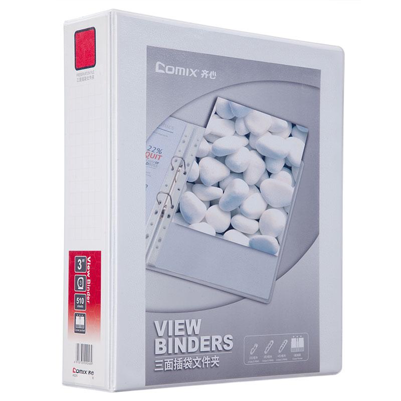齐心 A0235 3寸3孔美式三面插袋D型档案夹 A4 白 单位:个