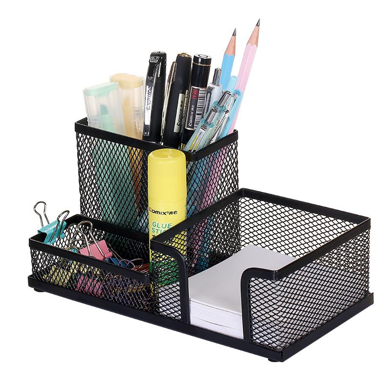 > 齐心 B2061 耐用铁网多功能笔座 205*105*100mm 黑色 单位:个