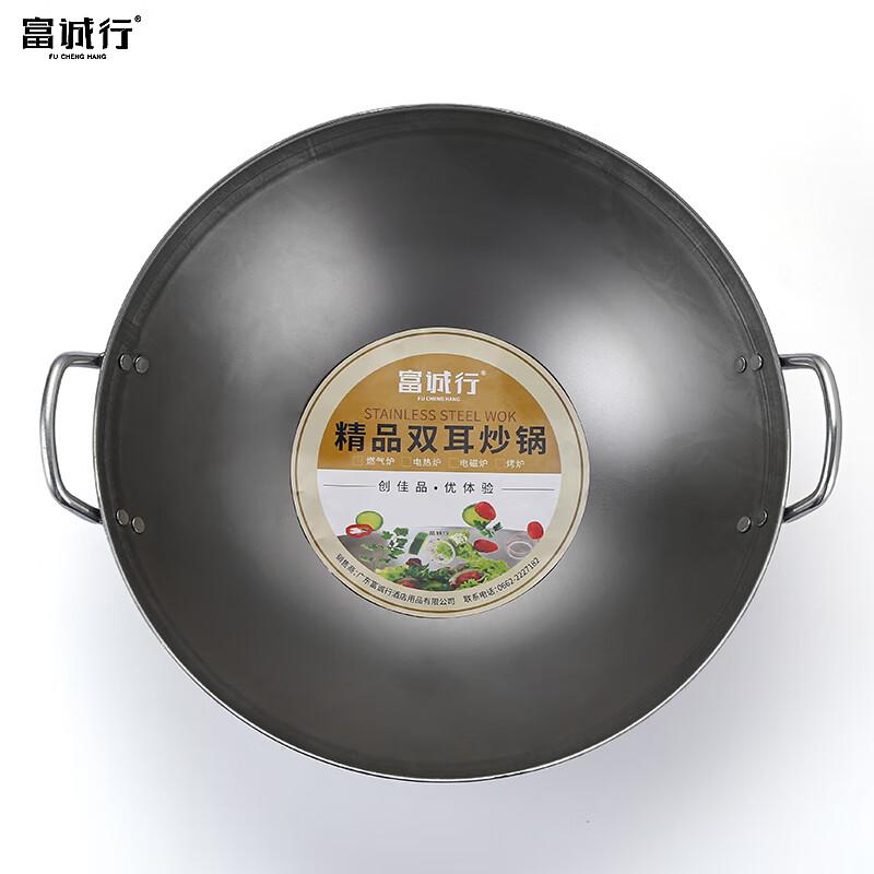 富诚行 商用凹面电磁炉炒锅不锈钢双耳炒锅 双耳直径50cm