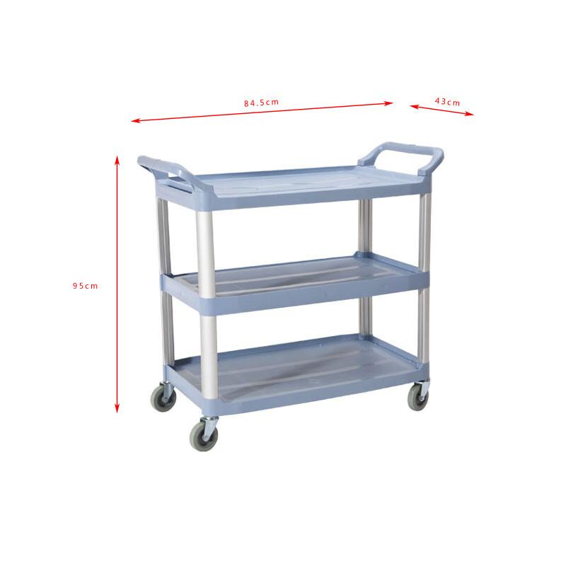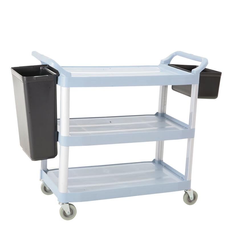 富诚行 拆装式多用途三层手推车灰色带挂桶 小号三层餐车带挂桶 单位:辆