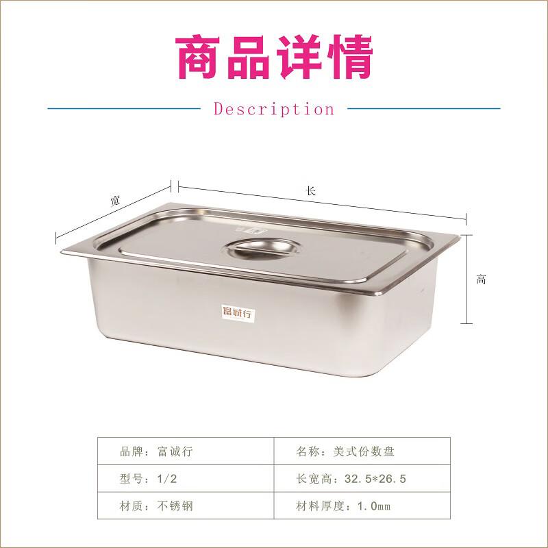> 富诚行 不锈钢美式份数盘带盖套装 1/2份数盘带盖 高15cm