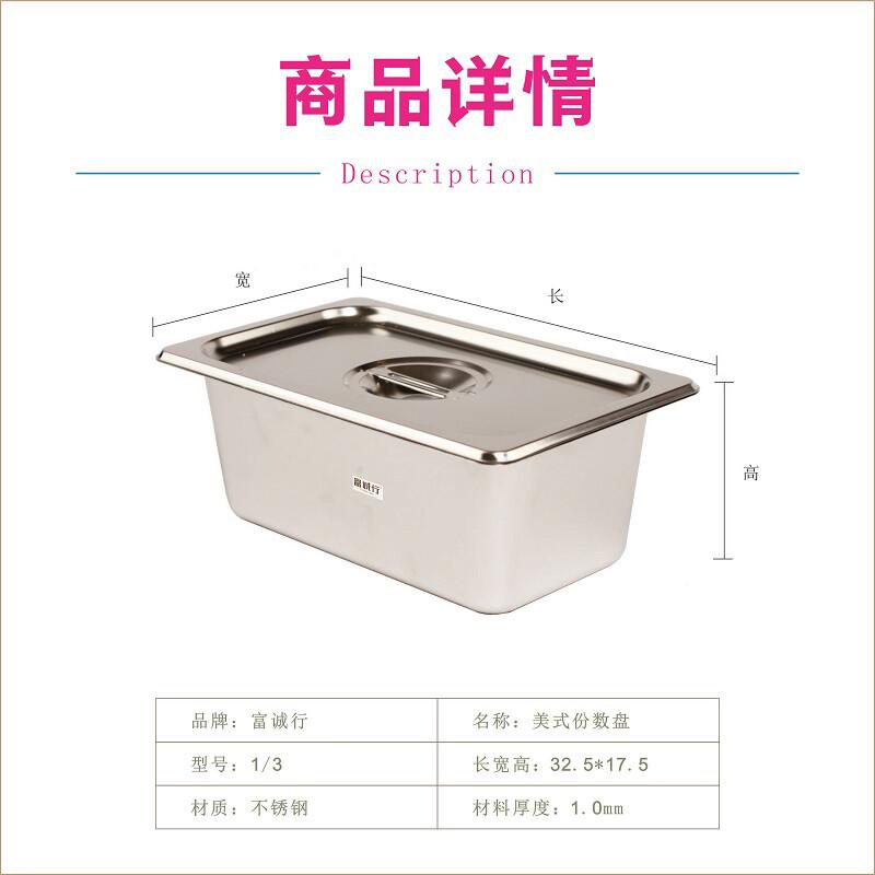 富诚行 不锈钢美式份数盘带盖套装 1/3份数盘带盖 高10cm
