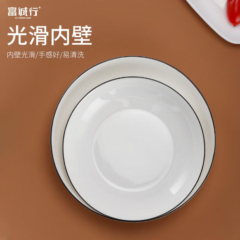 富诚行 黑边陶瓷饭盘菜碟 10只装 20cm 7英寸直径18cm 单位:组