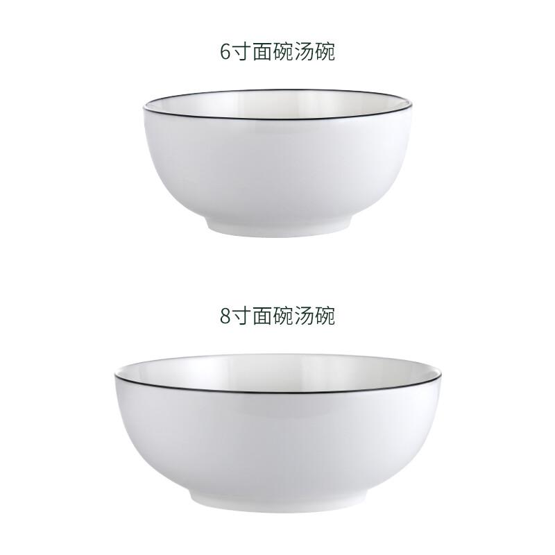富诚行 黑边陶瓷面碗汤碗 1个装 8英寸