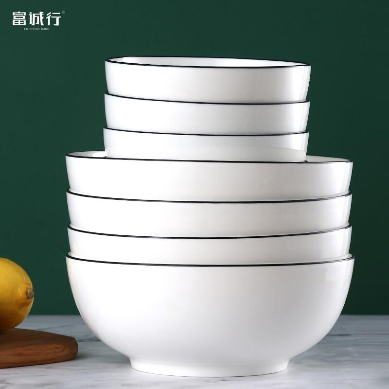 富诚行 黑边陶瓷面碗汤碗 10个装 6英寸 单位:组