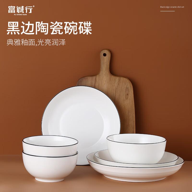 > 富诚行 黑边陶瓷北欧风 4.5英寸饭碗10只装