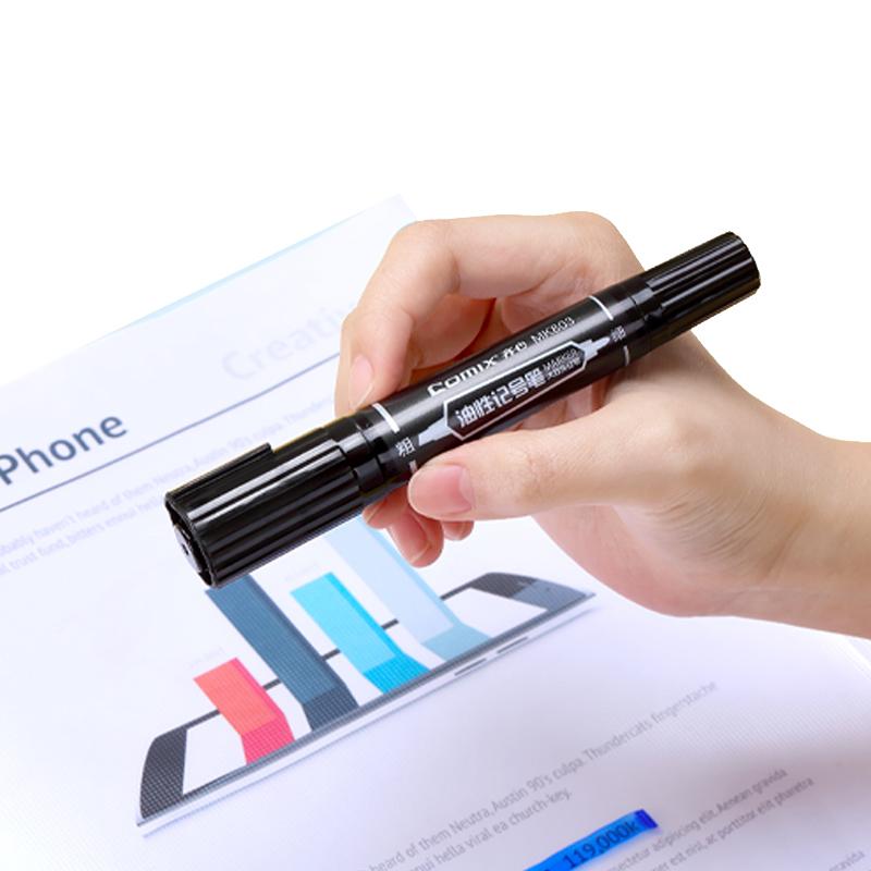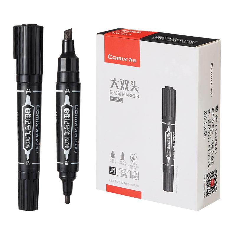 > 齐心 MK803 大双头记号笔 2.0mm-6.0mm 黑 10个装