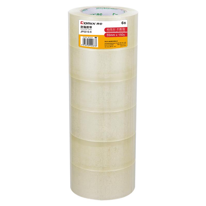 > 齐心 JP5515-6 封箱胶带 55mm*150y 6卷/筒 透明 单位:筒