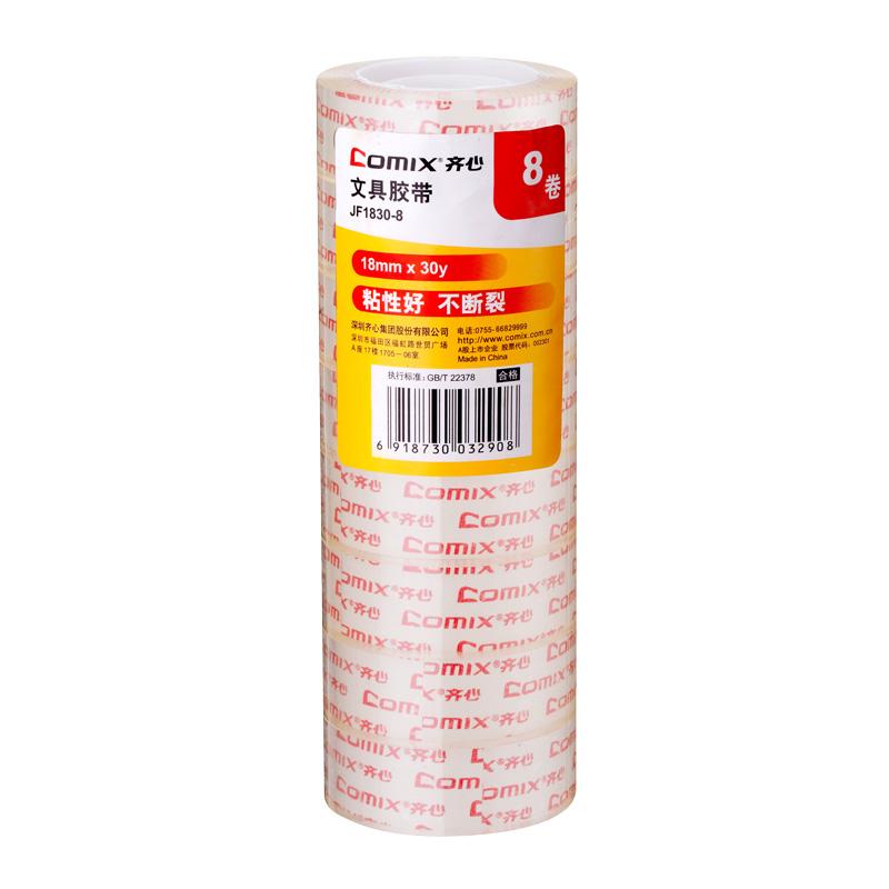 齐心 JF1830-8 超透文具胶带 18mm*30y 透明 8卷/筒 单位:筒