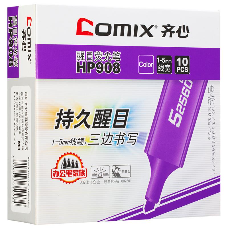 > 齐心 HP908 醒目荧光笔 5.0mm 紫 10个装