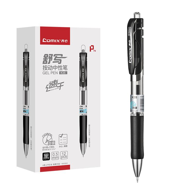 > 齐心 K35 舒写按动中性笔 0.5mm 黑 12个装